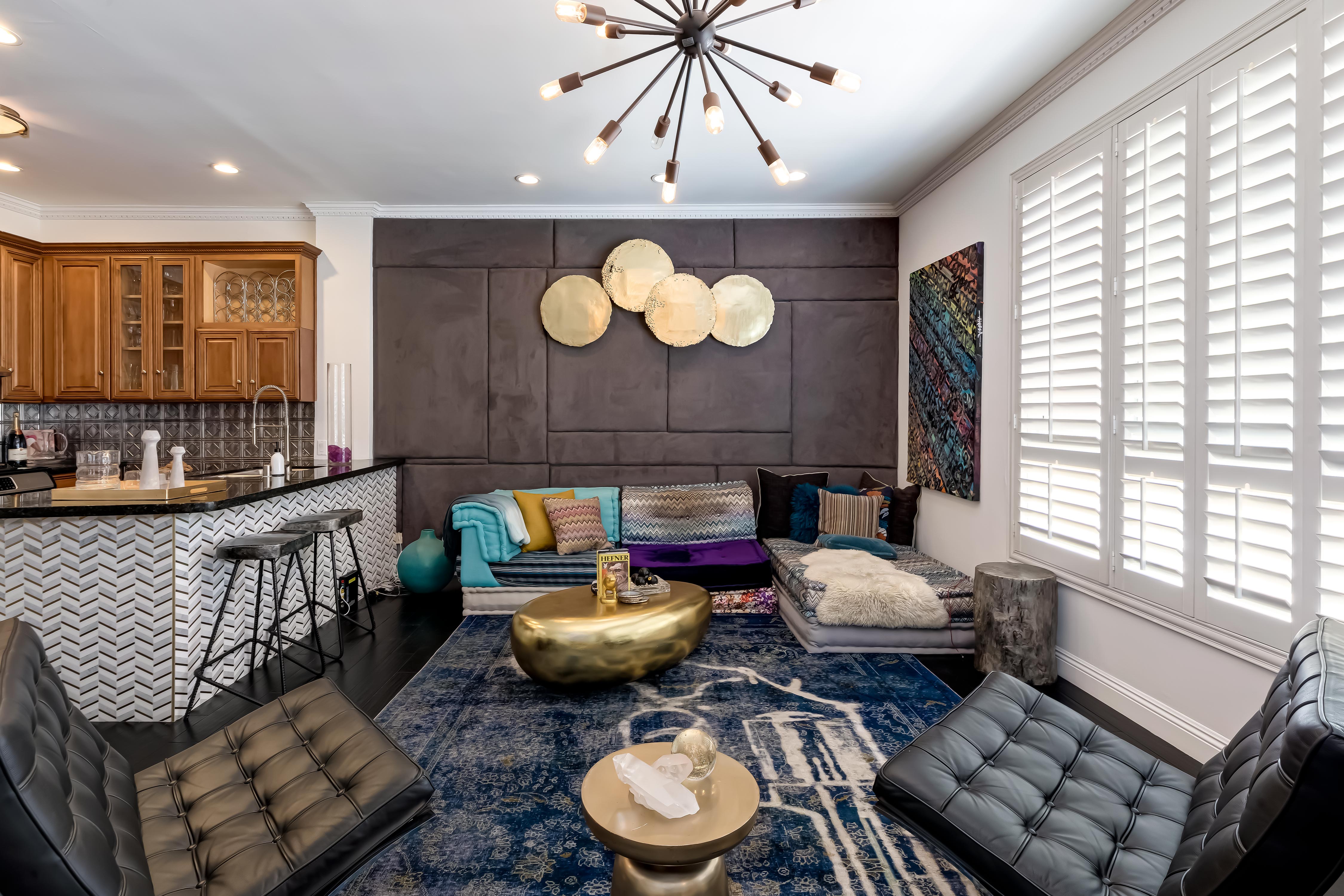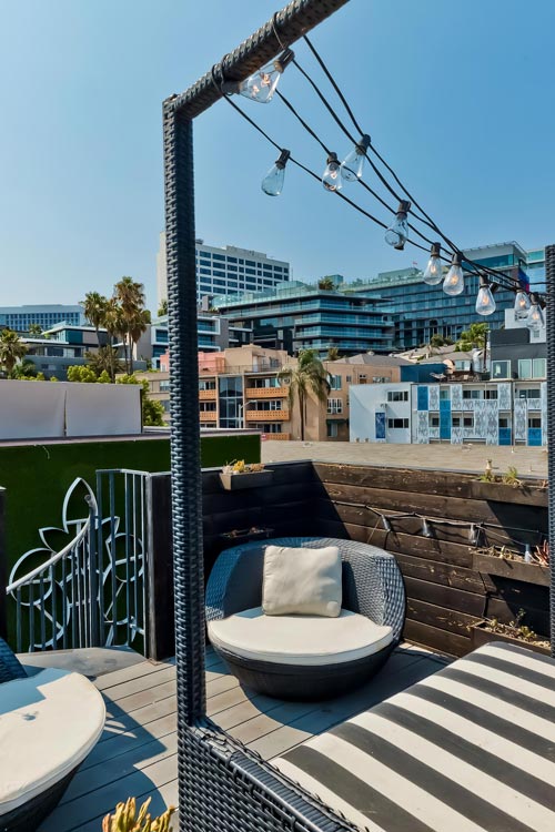 Set in the very heart of West Hollywood, this unusual townhome is highlighted by a two-story private rooftop patio with spiral staircase, surrounded by wraparound views from Downtown to the ocean. Inside, a sweeping Great Room/kitchen space is lit by a wall of windows and warmed by a stone fireplace with wood burning and gas options. A granite peninsula counter seats four in the stainless-featured kitchen. Dramatic open staircases lead to the upper levels. On the first floor, two-bedroom suites include a primary retreat with indulgent sunken shower/tub and double vanities. On the third, a loft/office features a wall-sized window with sliding glass door to the lower roof deck, creating a sunlit work environment. A newer in-unit washer/dryer, garage parking and large storage area complete the amenities. Quality double-pane windows, plantation shutters and crown molding enhance the ambience throughout. The building's recently remodeled private pool is ideal for summer gatherings. Low HOA dues include common area maintenance, insurance, water, parking and pool. This quintessential West Hollywood address is moments from The Strip and a short hop to Santa Monica Boulevard and Melrose. Inside and out, it's a rare find.